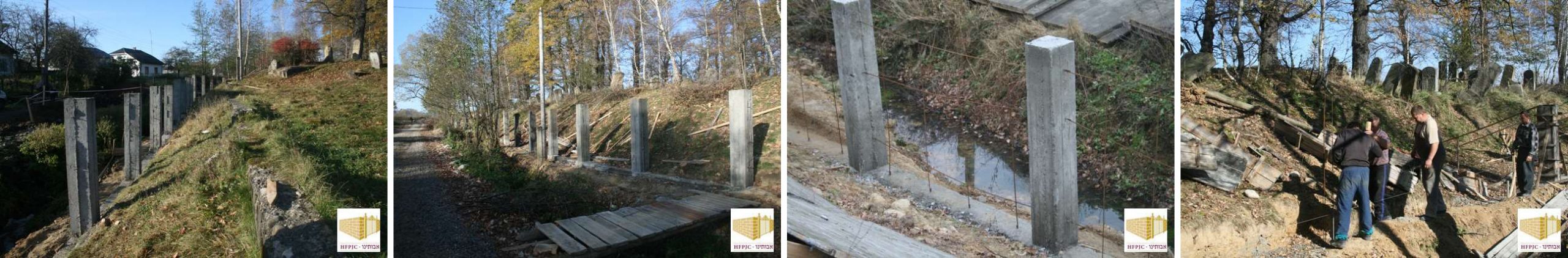 Installation of the poured concrete wall around the Jewish cemetery in Bolekhiv. Images © HFPJC.