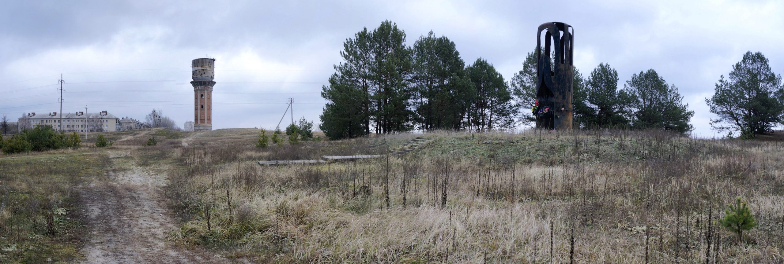 The Jewish mass grave site near Slavuta, with the memorial monument at right 24Apr2021 • 2560 × 864 • Test The Jewish mass grave site near Slavuta, with the memorial monument at right. Photo © RJH. The Jewish mass grave site near Slavuta, with the memorial monument at right