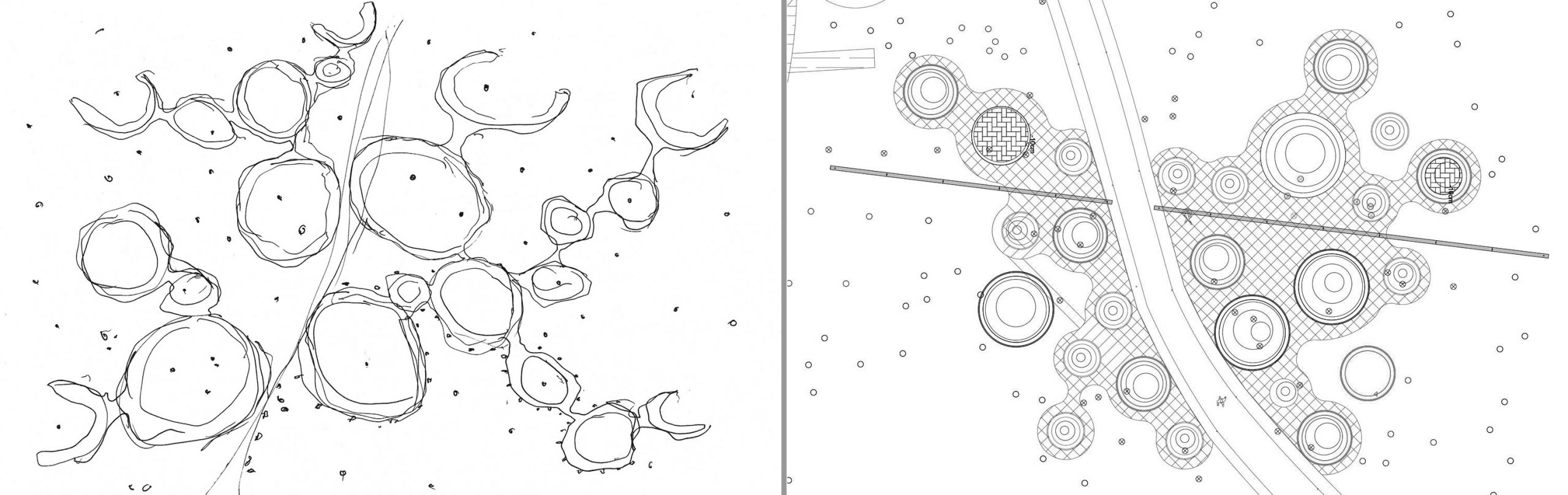 Initial hand sketch and later computer layout of landscapes